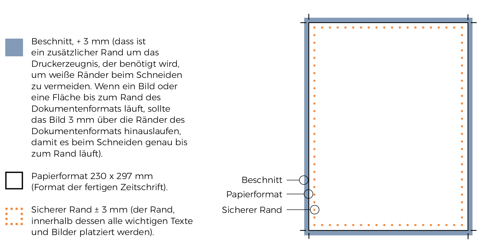 - Bei Beschnittzulage: Rundum 3 mm nutzen.