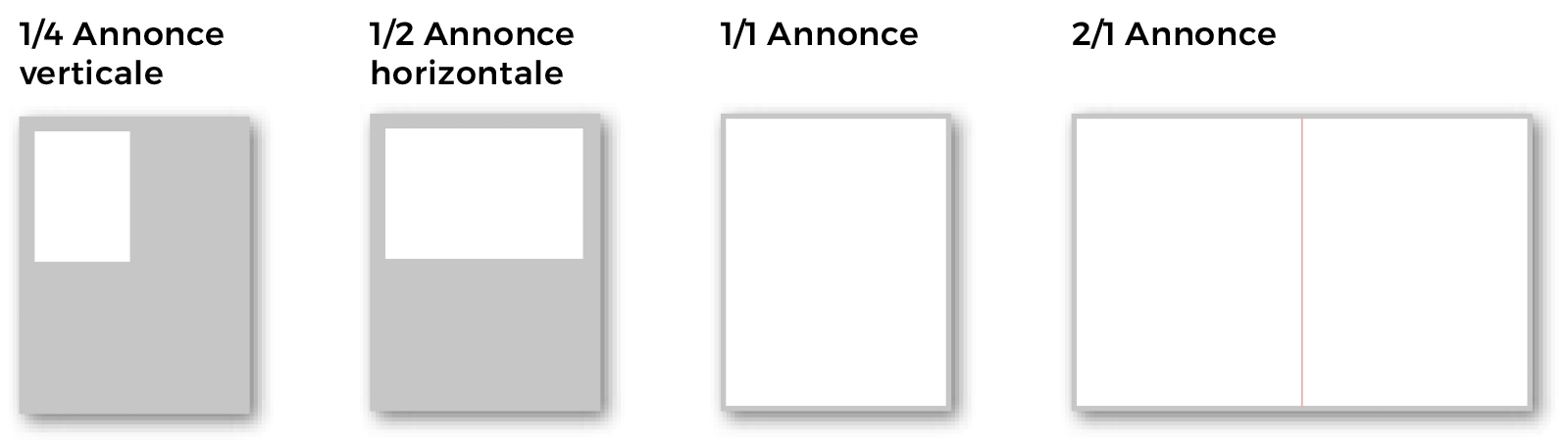 - N’utilisez pas de bordures encadrées sur les publicités de 1/4 + 1/2 page.